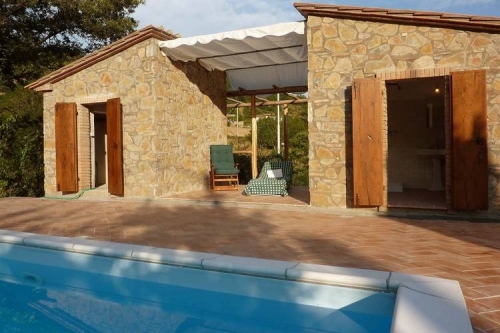 Zur Villa gehören ein gut gepflegter Garten und ein Pool 6x 12 m mit Terrasse und einem Poolhaus mit Bad und Umkleidebereich. Luxus pur. Vom Garten und den Terrassen bieten sich immer schöne n Aussichten auf die umliegende Landschaft. Von der Terrasse im ersten Stock können Sie bei sehr klarem Wetter bis zum Meer sehen.